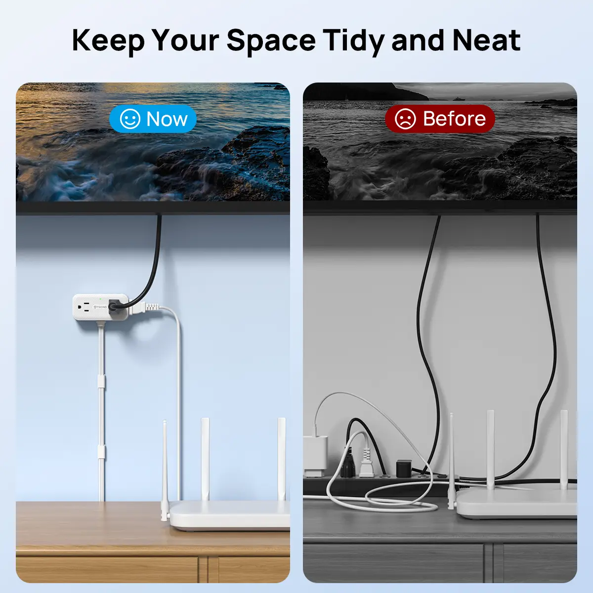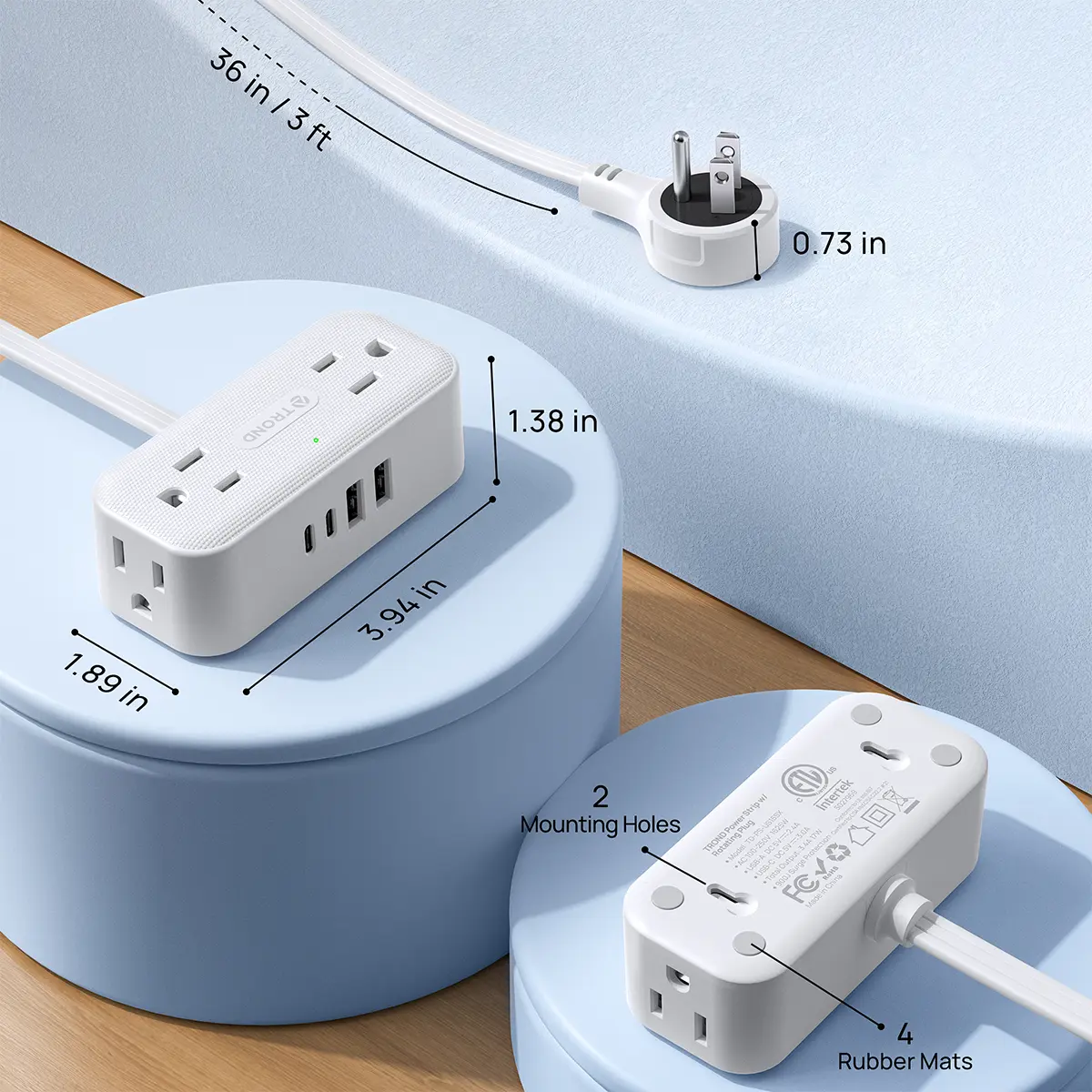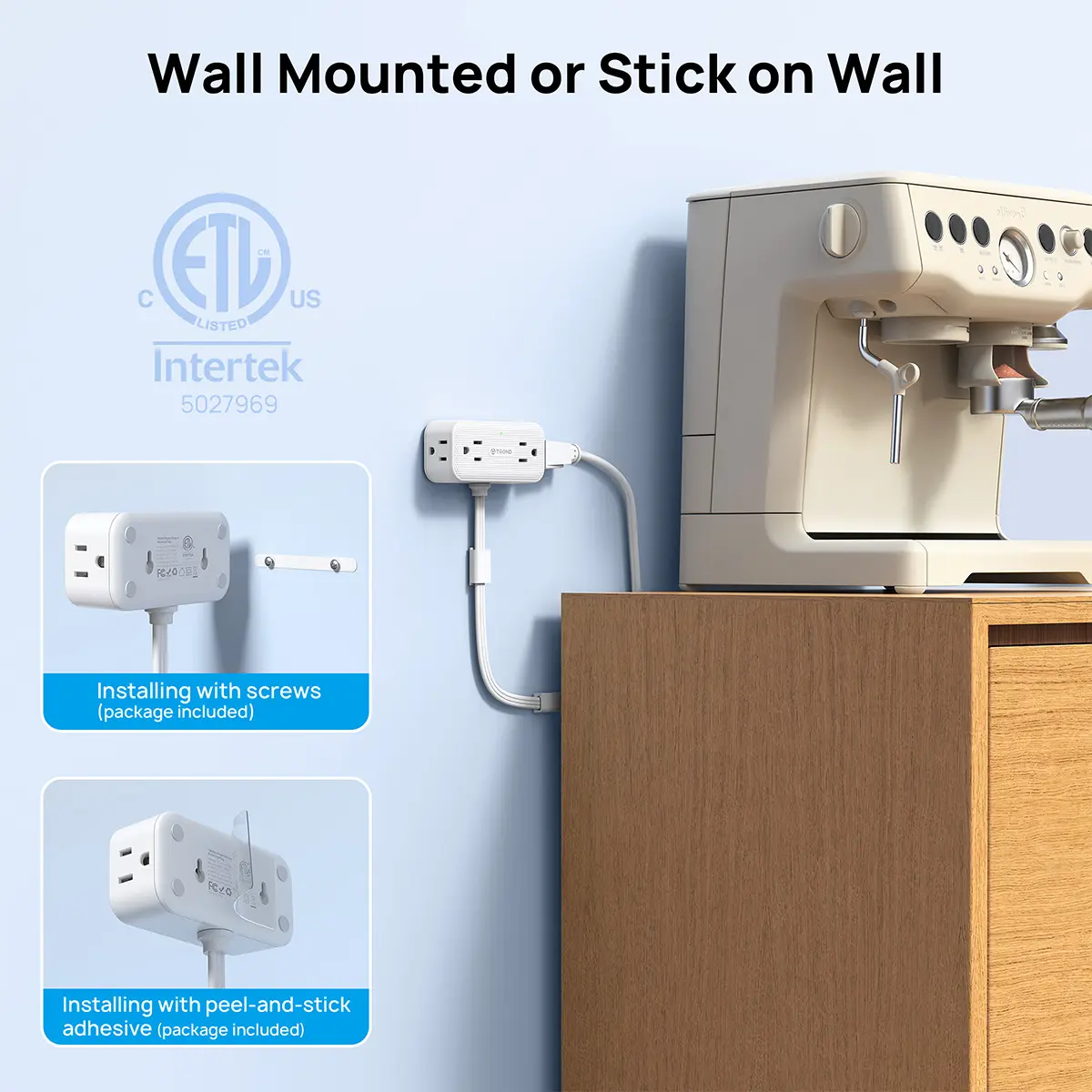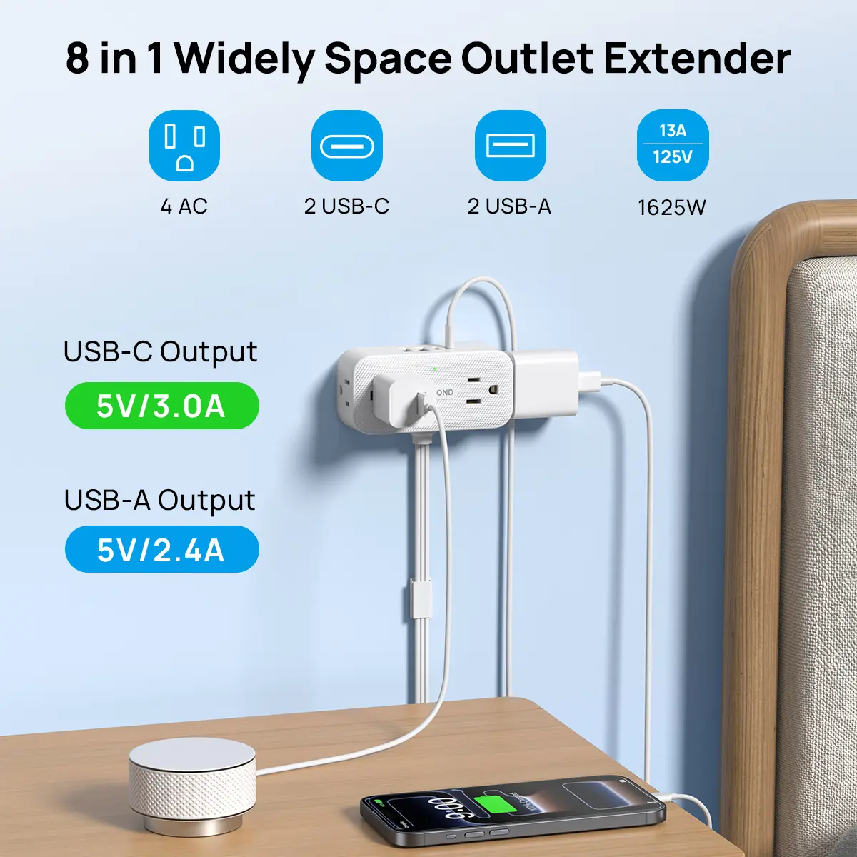 Equipped with 4 AC and 4 USB ports, this extender splitter provides ample power and charging options. It's a surge protector, safeguarding your devices from electrical damage. The mountable design allows you to place it on any flat surface, making it a practical addition to any room.