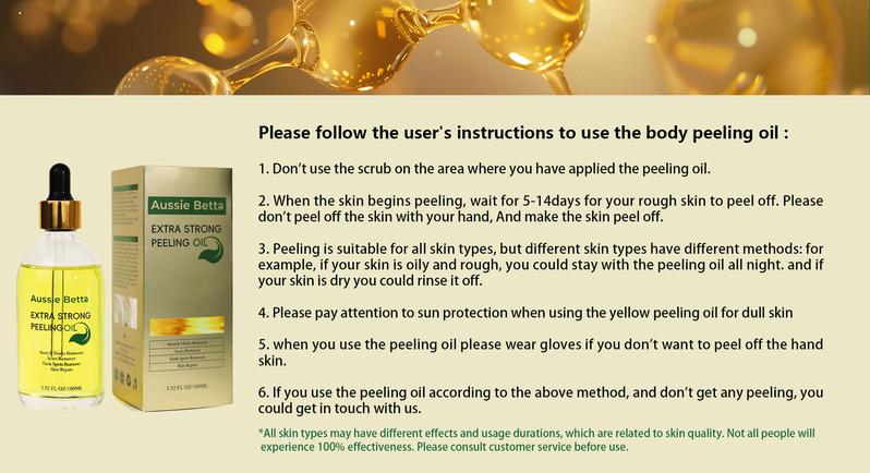 Aussie Betta Extra Strong Peeling Oil is a powerful exfoliating treatment designed to remove dead skin, dark spots, scars, and rough patches while promoting skin renewal.Originating from Australia, this formula combines natural plant extracts and advanced skincare technology to deliver safe, effective, and noticeable results.