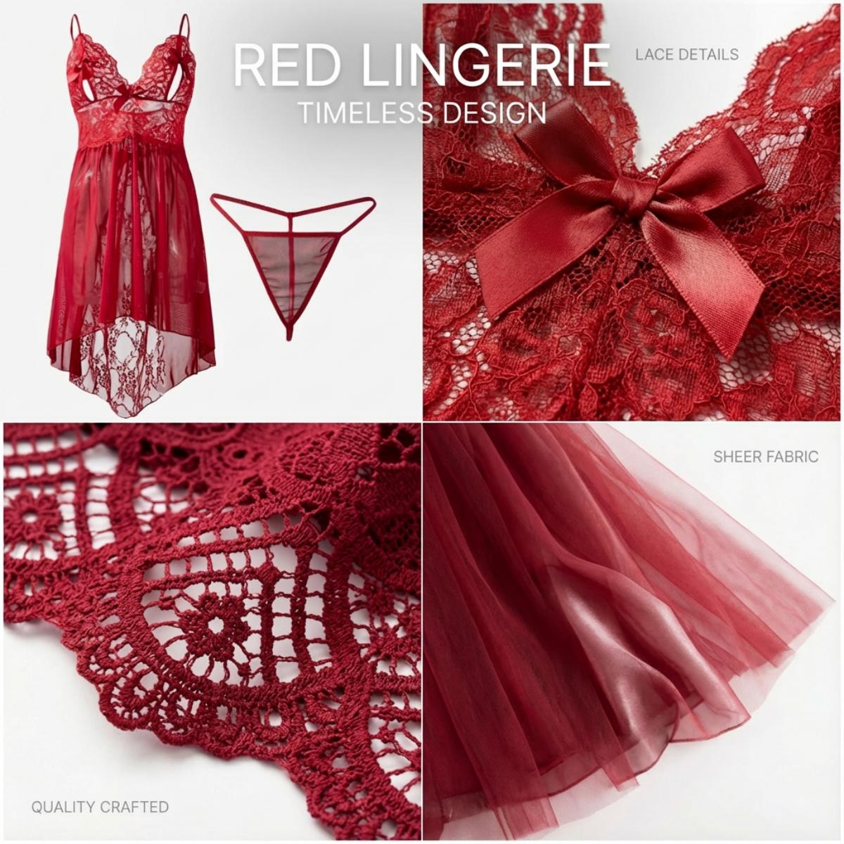 Step into confidence with this beautifully designed lace babydoll nightdress. Crafted from soft mesh and delicate floral lace, this lingerie adds a touch of elegance to your nighttime wardrobe—perfect for relaxing, gifting, or romantic evenings.