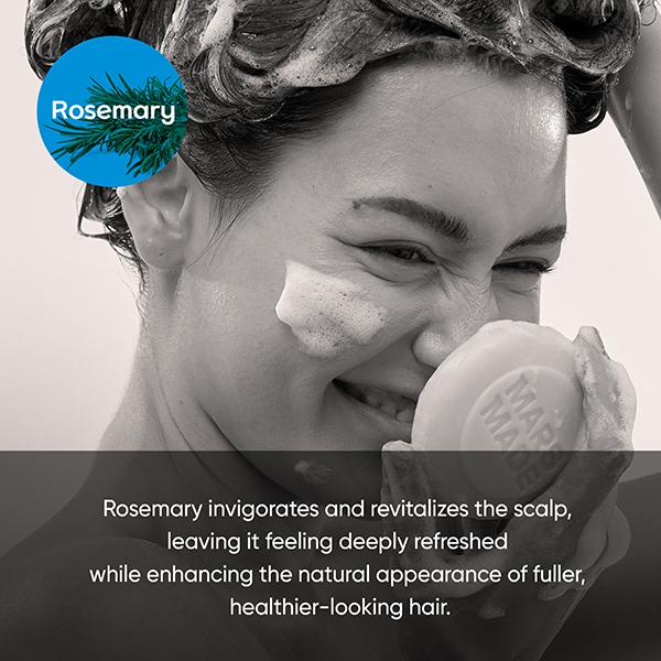 Invigorate your hair and awaken your roots. Rosemary oil promotes healthy blood circulation to the scalp, which may support hair growth and reduce shedding. This bar refreshes your scalp while delivering a subtle herbal scent and a soft, manageable finish.